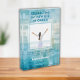 A beautiful and modern photo block featuring an abstract ocean blue background. This unique keepsake gift is perfect for a Christian baptism and comes with a photo template to showcase a precious moment from this memorable day. The powerful bible verse from Titus 3:5 is included, and can be changed to a scripture of your choice for a personalized touch. Customize this photo block with the name and date of the baptism to make it truly one-of-a-kind. Celebrate this religious milestone with a heartfelt and personalized gift that will be cherished for years to come.
