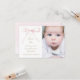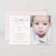Baptism pink bow thank you card