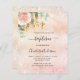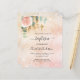 A rose gold and blush pink gradient background decorated with eucalyptus greenery, a rose gold and blush pink rose, and golden leaves and faux silver glitter drops. Personalize and the childs name and ceremony details.