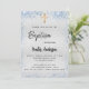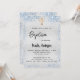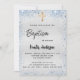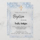 A modern, elegant baptism, celebrating a baby boy. Faux silver looking background decorated with blue faux glitter sparkles and a golden cross. Personalize and add a name and party details. Black colored letters.