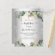 A faux silver looking background decorated with eucalyptus greenery and golden leaves and faux silver glitter sparkles. A golden cross. Personalize and the child's name and ceremony details.