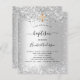 For an elegant and baptism invitation. A faux silver metallic looking background. Decorated with faux glitter and a golden cross. Personalize and add a name and details. Modern hand lettered style script