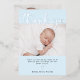This simple and stylish, light blue with silver foil Baptism or Christening thank you card features two photos of your baby, with elegant modern silver foil script typography and a matching silver cross.