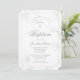 Baptism White Marble Silver Cross Script Boy Photo Invitation
