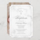 Invite the guests to your daughters baptism with this trendy invitation card. This design features a white and grey marble background with a simple faux silver cross at the time with your celebration details below in elegant grey typography for you to personalize. On the back of the card is a place for your daughters 5x7 photo to make this a one of a kind invite your family and friends will adore! I really enjoyed designing this invitation for you. Enjoy! Designed by artist ©Susan Coffey. Photography © Storytree Studios, Stanford, CA.