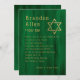 Celebrate your son’s special day with this modern and stylish Bar Mitzvah invitation. This invitation features a striking design of emerald green techno looking streaks creating a futuristic and fun look. The invitation also has a gold Star of David and a customizable text area where you can add your son’s name, date, time, and location of the event. You can also choose from different paper types, shapes, and sizes to suit your preferences. This invitation is perfect for anyone who loves technology, science, or gaming, and wants to make a lasting impression on their guests.