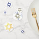Bar Mitzvah or Bat Mitzvah decorations should include this festive Star of David table confetti with optional personalized text. Blue and white, silver and gold double-sided Star design allows for customized options.