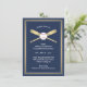 Compliment navy blue and gold birthday party or bar mitzvah invitations with elegant baseball theme reception enclosure cards. All text is simple to customize or delete as needed. Card includes any celebration details of your choice such as party location, date, time, website, hosts names, etc. Design features faux foil baseball bats, classic art deco inspired typography, and a navy blue, gold & white border. Please note that gold is printed colour, not metallic foil.