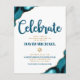 Be proud, rejoice and showcase this milestone of your favourite Bar Mitzvah! Include this cool, unique, modern, personalized insert for additional information to your event. Dark teal blue script typography and faux gold Star of David overlay a simple, clean white background with turquoise blue agate rocks accented with faux gold veins. Personalize the custom text with your Bar Mitzvah’s name, date, and venue information. Guaranteed to add stylish fun to his special occasion!