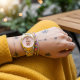 The watch is bright and shiny. It feels strong and durable. It is very appealing and attractive. The printed image appears clear. It is a perfect reminder for me to "Be Present" everywhere I go.