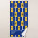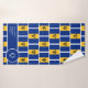 Modern personalized BARBADOS FLAG Bath Towel Set, with customizable Bible verse and MONOGRAM. The design shows the FLAG OF BARBADOS in a tiled horizontal pattern, with matching blue strap at the bottom of the hand and bath towels. The inspirational quote currently reads GREAT IS YOUR FAITHFULNESS, O LORD, which you can personalize with text up to three lines. Other Barbados flag designs can be found in the BARBADOS COLLECTION by Berean Designs.