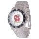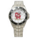Has heft and feel of expensive stainless steel quartz watches. Good band with safety catch. I removed links, which is easy because engraved arrows show direction to push the linking pins. As always by this seller, the image (a railroad logo) is a perfect reproduction of my emailed image, and is precisely spaced and aligned.