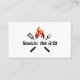 Barbeque themed business cards designed with a utensils and flame graphic and text you can personalize with your restaurant name featured on the front. Just replace our text with your for a customized design you can personalize online.