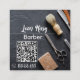 This design features photos of barber tools-of-the-trade on a stone background. The white text front-and-back pops against the grey background. Customize with your shop name, name, QR to your personal URL (you type in the URL and Zazzle does the rest!) and phone number. Also available in a traditional rectangle business card shape.
