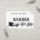 Cool vintage Barber business cards in black and white but you can change the background to any colour you like! Barber for hire business cards.