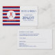Elegant and simple modern style refer a friend card for a barber hairstylist in red, white and dark blue stripes with a scissors logo (you can replace it with your own).