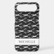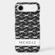 Barber scissors pattern personalized hair stylist iPhone case. Classy template with barber shears silhouette logo. Elegant black and white design for hair stylist, hairdresser, store, barber shop, beauty salon, spa business, beautician etc. Add your own name. Classy modern typography.