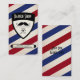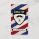 Barber shop Business card with moustache and bow tie graphic. Card has a traditional red, white, and blue barber style to it. Fully customizable, enter your company information, logo, or background. Perfect for a barber, barbershop, or stylist.