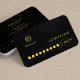 Luxury simple punch loyalty business card for barber hair stylist salon in faux gold on black elegant leather look background featuring faux gold scissors and laurel wreath logo and 10 golden circles inside a golden framed rectangle. ++++++++++++++++ Please note that there is not real leather, the leather look is obtained by printing. ++++++++ Personalize it with your details! ++++++++ Suitable for hair men beauty care, spa, independent barbers, grooming salons.