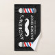 Barber shop pole hand towel for men's hair salon. Traditional red and blue stripe barber pole sign drawing for men's hair salon. Stylish decor for hair salon owner. Make your own trendy barber shop presents for boss, coworker, employees etc. Unique hair stylist gift ideas. Black or custom background color. Personalized this mat with your own business name or company slogan.