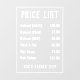 Window cling sign price-list for a hairdresser or barber shop. Alter prices as you wish. Displays up to 6 items and prices. White lettering on a transparent background.
