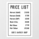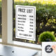 Window cling sign price-list for a hairdresser or barber shop. Alter prices as you wish. Displays up to 6 items and prices. Black and white.