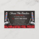 This is a CUSTOMIZABLE barbershop business card design. The design is represented by barbershop colors of blue and red. All artwork was created and illustrated by Dale Arthur of whizcreations.net.