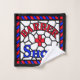 It was advertised as NAVY blue and the color sent was greenish blue. I am disappointed in this product. Quality and printing are great as are all my other orders. As you can see in picture the tea towel on right is perfect, hand towel not so much! Print was awesome and just as ordered