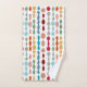 Ce kit de serviettes présente un design moderne du milieu du siècle, composé de cercles et d'ovales entrecoupés de couleurs rétro entrecoupés sur un champ de blanc.