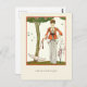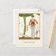 A postcard with the fashion illustration from 1913, Creation Paquin by George Barbier (1882-1932). A woman with an umbrella under a tree in a white pleated dress and orange jacket. A design from the French fashion house of Paquin (Maison de Couture). Jeanne Paquin was a dressmaker and fashion designer. Isidore Paquin ran the business.