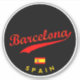 Barcelona badge with flag of Spain colours, vintage typography and black background car sticker style, travel sticker, luggage tag.
