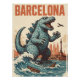 Kaiju, Barcelona, Monster, Cityscape, Spain, Travel Poster, Vintage, Retro, Sci-Fi, Fantasy, Art Print, Pop Culture, Giant Monster, Urban Art, Destruction