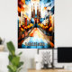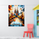 Capture the artistic spirit of Barcelona with this elegant cubist illustration. Highlighting the majestic Sagrada Familia bathed in the soft glow of sunrise and framed by vibrant geometric avenues, this artwork beautifully blends modern style with Catalan cultural heritage. Ideal for contemporary art lovers, fans of Barcelona's unique charm, and sophisticated interior decor.