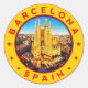 Emblem of Barcelona design with flag of Spain colours and Basílica de la Sagrada Família church.