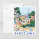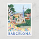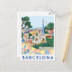 Celebrate the colorful beauty of Barcelona with this illustrated travel postcard featuring the iconic Park Güell and Antoni Gaudí’s famous mosaic architecture overlooking the city. Designed in a soft vintage travel poster style, the artwork captures sunny Mediterranean tones, tiled patterns, and charming city rooftops that evoke the relaxed atmosphere of Spain’s most vibrant destination.