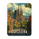 Vibrant, colourful travel poster showcasing the iconic Sagrada Familia in Barcelona. Designed in a flat vector art style with pastel tones and bold colour blocks. Perfect for home décor or travel enthusiasts.