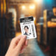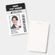 A modern employee id badge. The black design features your company logo, barcode, business name and tag line. It shows a well sized employee id photo. Information can be personalized and so far includes the employee's name, badge ID number, as well as date issued and the expiry date. A black bar at the top shows the employee's designation or occupation in large bold letters. This bar can also be used to show a department if preferred.