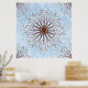 A mandala design created from photos of bare winter tree limbs against a blue sky with wispy white clouds. At the centre, the promise of spring sunshine to come.