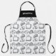 Barista Coffee Shop Cafe Bar Custom Name All-over Print Apron.A cool pattern of sandwich, cake, donut, coffee icons in black and white. An elegant gift for family or friends.