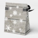 This stylish gift box has an illustrated barn board background, accented with snowflakes and beautiful ribbon script, that is easy to personalize.