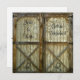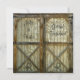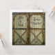 Two rustic country barn doors are featured on this rustic western design. The door panels have the couple's names and the phrase, Gettin' Hitched. The cross panels on the bottom of the hinged doors each have a single knot western rope .