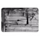 "Barn Door with Tree" magnet is a rustic image of the worn, weathered wood of a latched barn door with a tree growing against the outside wall of boards. Done in black and white.