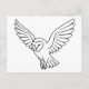 A clean black line drawing of a barn owl mid-flight, wings spread in silent motion. This minimalist design captures the grace and mystery of nocturnal birds, perfect for celestial and nature-inspired decor.