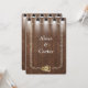 Glowing spotlights on rustic barn wood with wedding collage frame and gold rings for wedding invites.