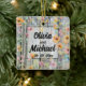 rustic barn-wood and orange pink wildflowers - botanical - back yard themed events - text customizable! Back of ornaments is customizable too!