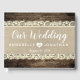 This rustic wedding guest book features a burlap look background bordered by delicate lace and rustic barn wood. Customize with your names, wedding date, and special quote on back. The perfect compliment to your rustic wedding decor.