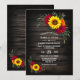 Barn Wood Sunflower Burgundy Rose Wedding Invitation