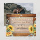 If you love sunflowers, this change the date is for you! This design features, string lights, sunflowers, and handwritten lettering on a wood background. Add your favourite photo on the reverse side.