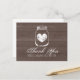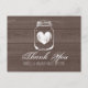 Barne panneau à grains de bois pays chic pot en verre de mason merci cartes. Amour et merci ! Partie de l'ensemble de do-it-yourself rustique. Design extérieur mignon avec coeur vintage et défraîchi. Idéal pour les mariages d'été dans les jardins extérieurs en juillet et août. Personnalisez avec le nom de la mariée et du marié plus la date de mariage. Couleur arrière - plan personnalisable. La typographie stylée de script en détresse. Belle oeuvre d'art pour mariage tendance. Couleurs Brown et blanches.