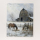 Grange et chevaux dans un corral. Ce puzzle peut être assemblé et accroché au mur comme art.